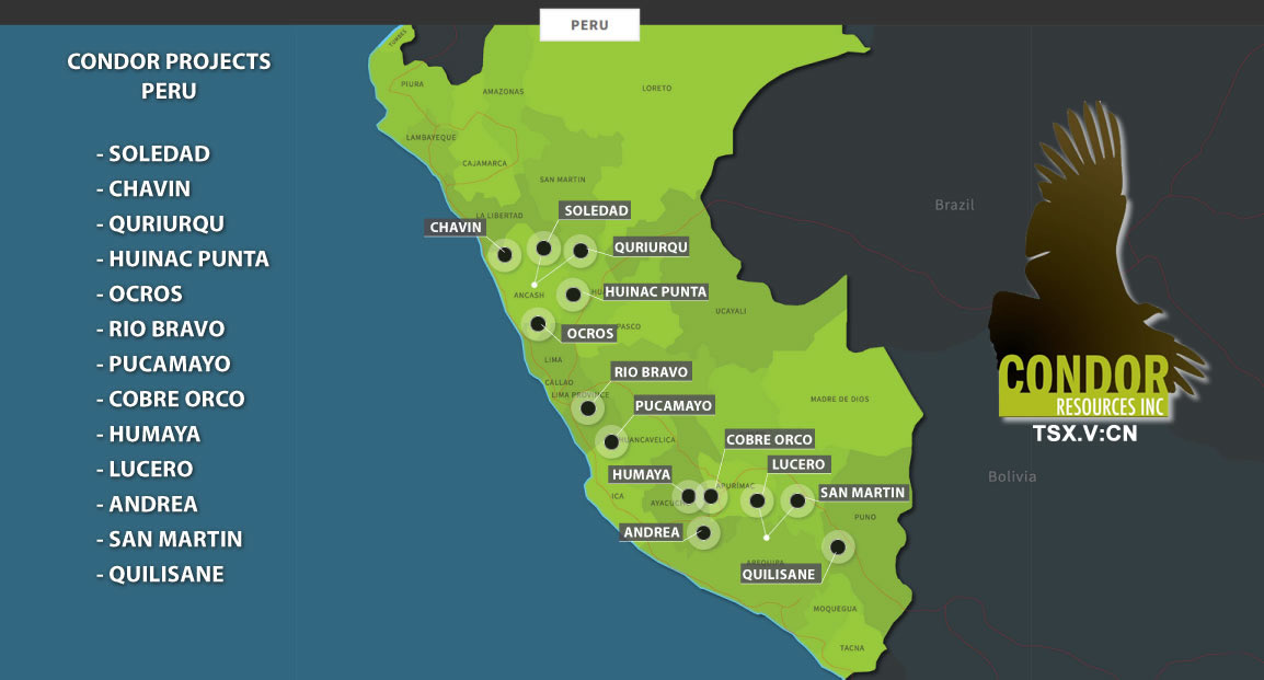 Condor Resources is a leading project generator in Peru, dedicated to advancing the discovery of precious metals through a diverse portfolio of 12 exploration targets and strategic joint ventures, aimed at maximizing shareholder value.